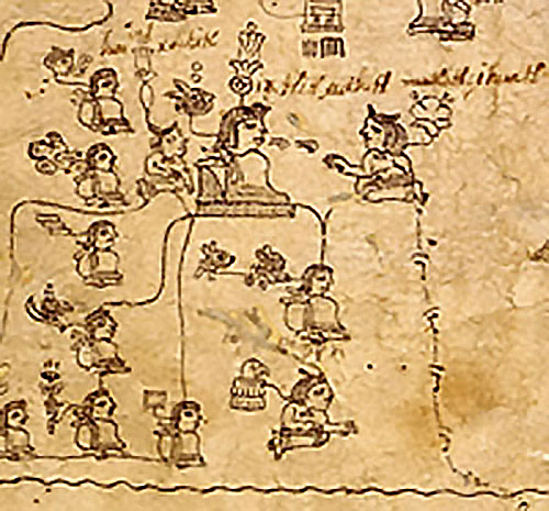 Arriba, Nezahualcóyotl con su hijo Nezahualpilli gobernando en su Palacio de Texcoco. (Códice Quinatzin).