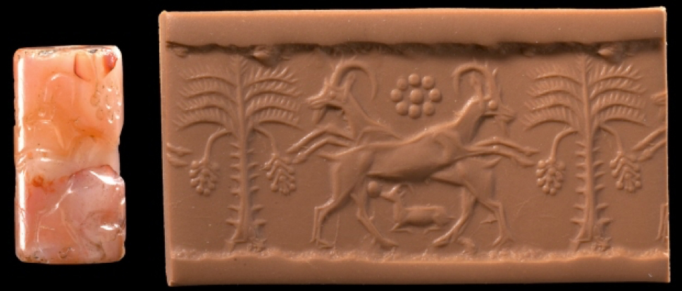 Simbólica animal y vegetal bajo una estrella de ocho puntas, sello asirio.
