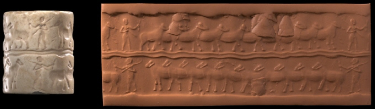 Escena de pastoreo, sello del periodo de Uruk, 3300 - 300 a. C.